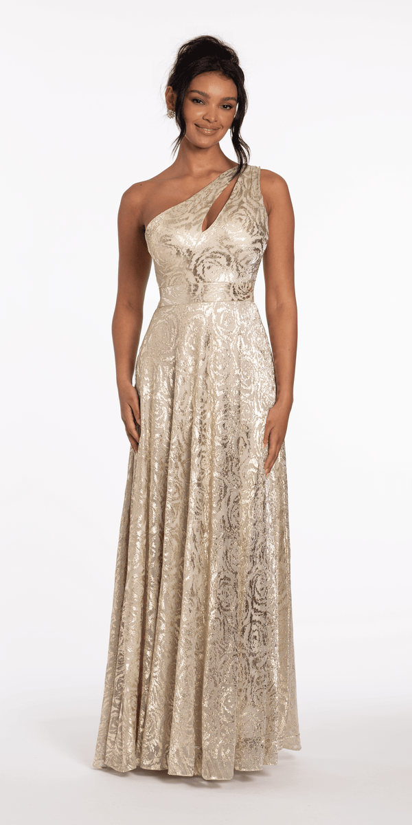 Foil Jacquard One Shoulder A Line Dress with Keyhole